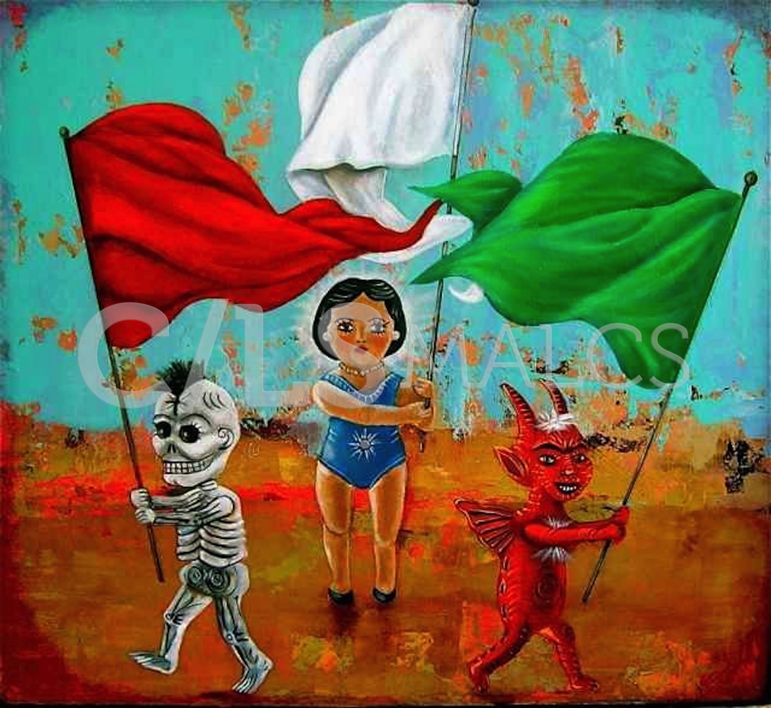 Born and raised in the small copper town, Superior, Arizona, my art is inspired by my Mexican heritage, its cultural icons, imagery, and by the events that have shaped my life. I am strongly influenced by my grandmother, who always encouraged me to create, and of the stories she passed onto me. Stories that not only give place and meaning to our existence but also on the allegorical and universal experiences that we all share; issues of identity, humor, life, love, death, spirituality, dreams and memories. My goal is that my paintings will be brought to life to tell their own stories. I strive to invoke humor, irony, social conscience, and a sense that although we all engage in behaviors that differentiate ourselves from one another, we are all still connected to one community. Inspired by Mexican folk artists who make art from the heart and with whatever materials they have at hand, my mixed media and assemblages are created with found objects that are reassembled, reimagined and recreated into a new life and new meaning.